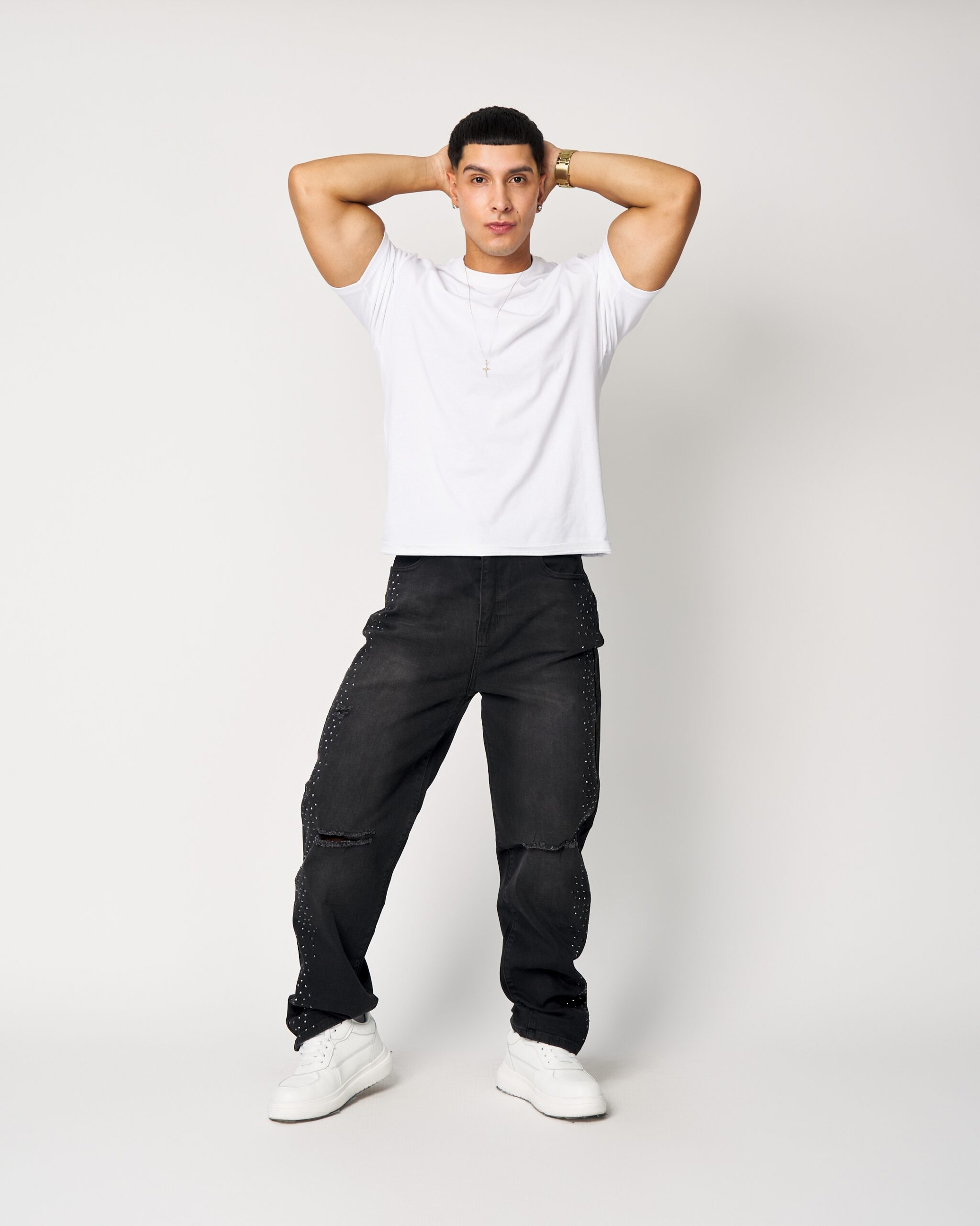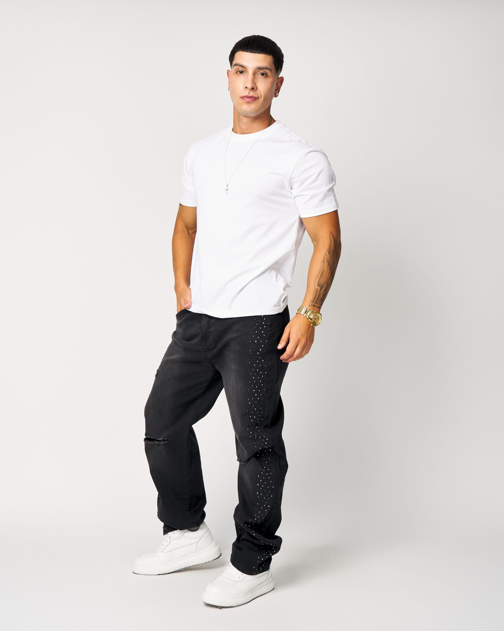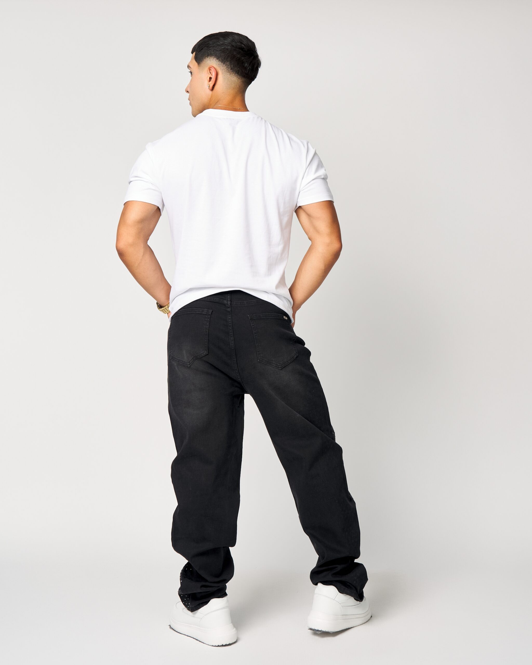El DM009-1 presenta un denim negro con microbrillos laterales y un desgaste sutil con rotura discreta, logrando un look urbano moderno y muy atractivo en vitrina. Su calce recto, caída cómoda y terminación pulida lo convierten en una pieza ideal para clientes que buscan estilo con diferenciación.